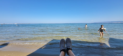 I liked sitting next to the water, but kids sitting behind us kept splashing water and sand our way, which was...