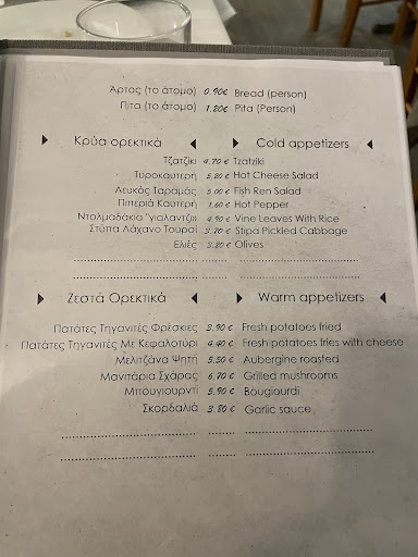 Read moreReally good and authentic food! The portions are a little bit small for the price but the quality is high. I can recommend from the food point of view. I did not like that they made us pay the verse that we didn’t order and that there was no sauce with anything. A little bit of tzatziki with the fries or the Kalamaries is normal at other restaurants. If you ask for it it’s an other 5€ but then then it’s a dish and not just a side.