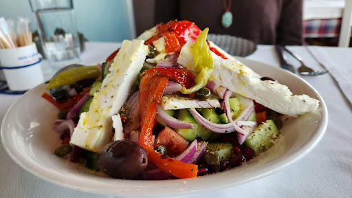 Avevamo voglia di mangiare pesce ma non ci siamo fatti mancare nulla! Abbiamo iniziato con un BUONISSIMA E FRESCHISSIMA insalata Greca accompagnata con l’immancabile e Buonissima Salsa Tzaziki ( ne avrei mangiato un piattone con il pane), poi con le cozze in bianco che sapevano di MARE, in seguito GAMBERONI FRITTI (che vi consiglio di provare per forza) ,poi un calamaro fritto e…….. delle TRIGLIE FRITTE che erano la fine del mondo! Durante tutto il pasto il personale è sempre stato molto attento a noi ed alle nostre esigenze, alla fine ci hanno offerto un dolce e del limoncello buonissimo fatto in casa!!!