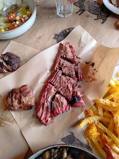 Wow!!! This place is a must for the Carnivore hiding within us all. The place is really nicely designed in the lodge style. Great big fireplace at the far end of the entrance. Windows on 3 sides overlooking the beautiful scenery of the mountains. The service is prompt and professional The food was amazing. Salads and sides are impeccable, but once the meat dishes arrive everything else disappears around you. The Brisket is smoked for 16hrs and when its served it melts in your mouth. Simply put heaven. The smoked chuck, the beef souvlaki and the burger patties reinforce the idea that this place is a gem. Then the sausage and pork back ribs arrive and then you know that anything to say about this place is not enough. Saying that this place is a must is not enough. This place is a need for anyone who loves excellent food. Bravo!!! Will definitely go...