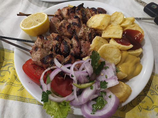 We tried many restsurants in Stavros, this one was the best, with the best food and waiters. The waiter (who took the order) is very friendly, funny, speaks som hungarian and romanian words. The food is very tasty, and very big portions, free dessert. We got the food at the same time, 9 people :) The only reason i am not giving it 5 stars is because of the placement of the restaurant, it is on the main street, noisy and with a lot of people passing by...