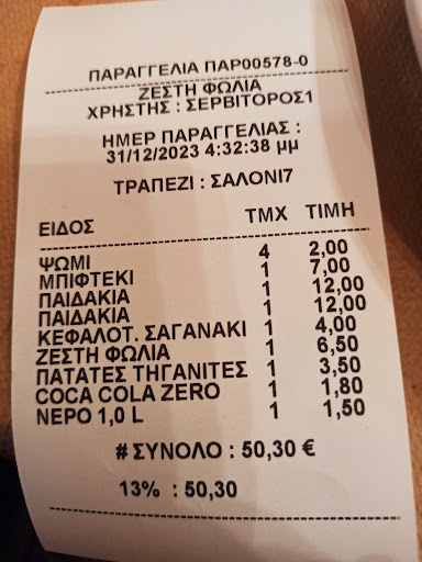 Pretty fast service and the food was delicious and the portions were normal. Also the prices was good enough for the portions and the quality of the food. I went there for my graduation dinner and they had an excellent service. It is almost on the center of the town so I recommend...