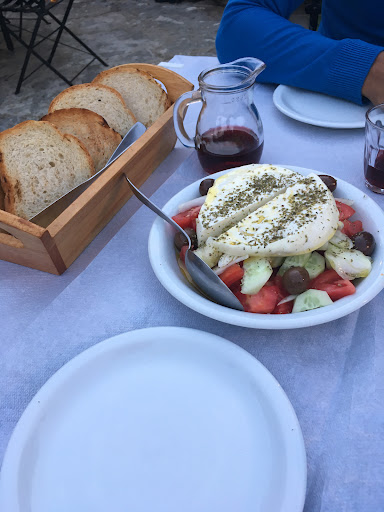We ate here two nights in a row! We were also staying at their hotel so it was very convenient. It was empty at around 8pm when we went the first night so we thought it was not the best food but WOW were we wrong. Literally the BEST Greek salad we’ve had the entire month we’ve been in Greece - they have their own farm & garden where they use fresh ingredients every time. The mother also makes fresh feta cheese that’s mouthwatering. Their pork souvlaki melts in your mouth, the sausage is 10/10 (we got the trio for 2 people - more than enough food for only €17) There wasn’t a single aspect of this meal that wasn’t well done. They also add a ton of oregano to everything they make, not only does it brighten the dish but give it such a distinct flavour. Can’t recommend enough - will be coming back when we...