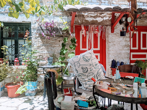 My friend and me were hiking in the Zagori national park for four days. On our last day we arrived in Vradeto. It is a beautiful village which in May is almost a ghost town. Except for the owner of this beautiful café, her parents and construction worker.
