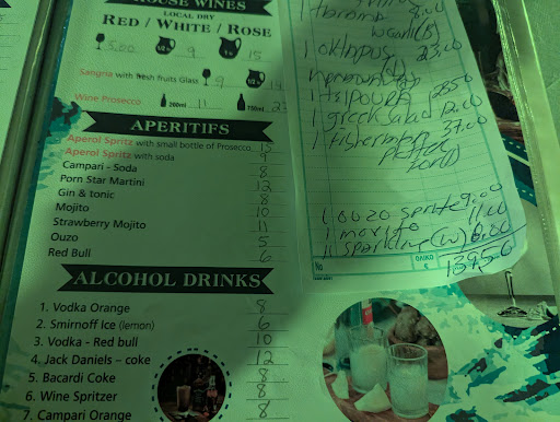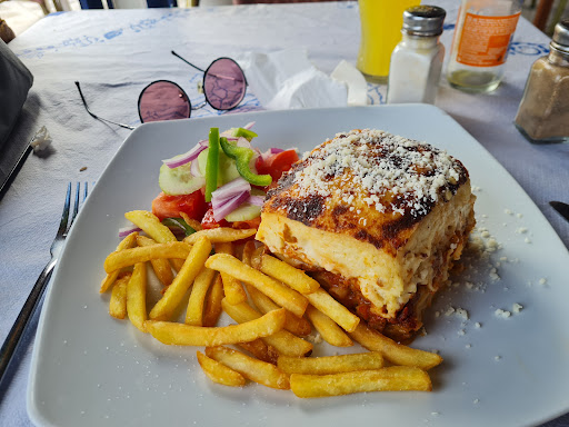 Read moreSadly the menu has shrunk with the end of season so close. Had fancied Stifado but it was not to be. Had Pastitsio instead. Wow! Was so tasty and far better than any Lasagne I've had. Although suspect it had been frozen. The restaurant is beach front, some seating under shelter, where I sat inspite of the sun shining brightly a few hours earlier there had been a thunderstorm. Still had a clear view of the sea, could hear the waves. Beautifully atmospheric. The guy running it, Johnny, was friendly but not intrusive. Think he got it just right at first! He became too attentive, kept returning too many times. Then asked me to return when they closed. I gave no encouragement, was not wearing revealing clothes but even if I was, his behaviour was unacceptable and creepy. Until that point I was just soaking up the quiet vibe, music playing in the background. He spoilt it. I gave the place a wide berth after. Coffee was a little strong for my taste, not particularly nice either. Have to say, the chips were the best I had all week! 'Cash only due to it being...