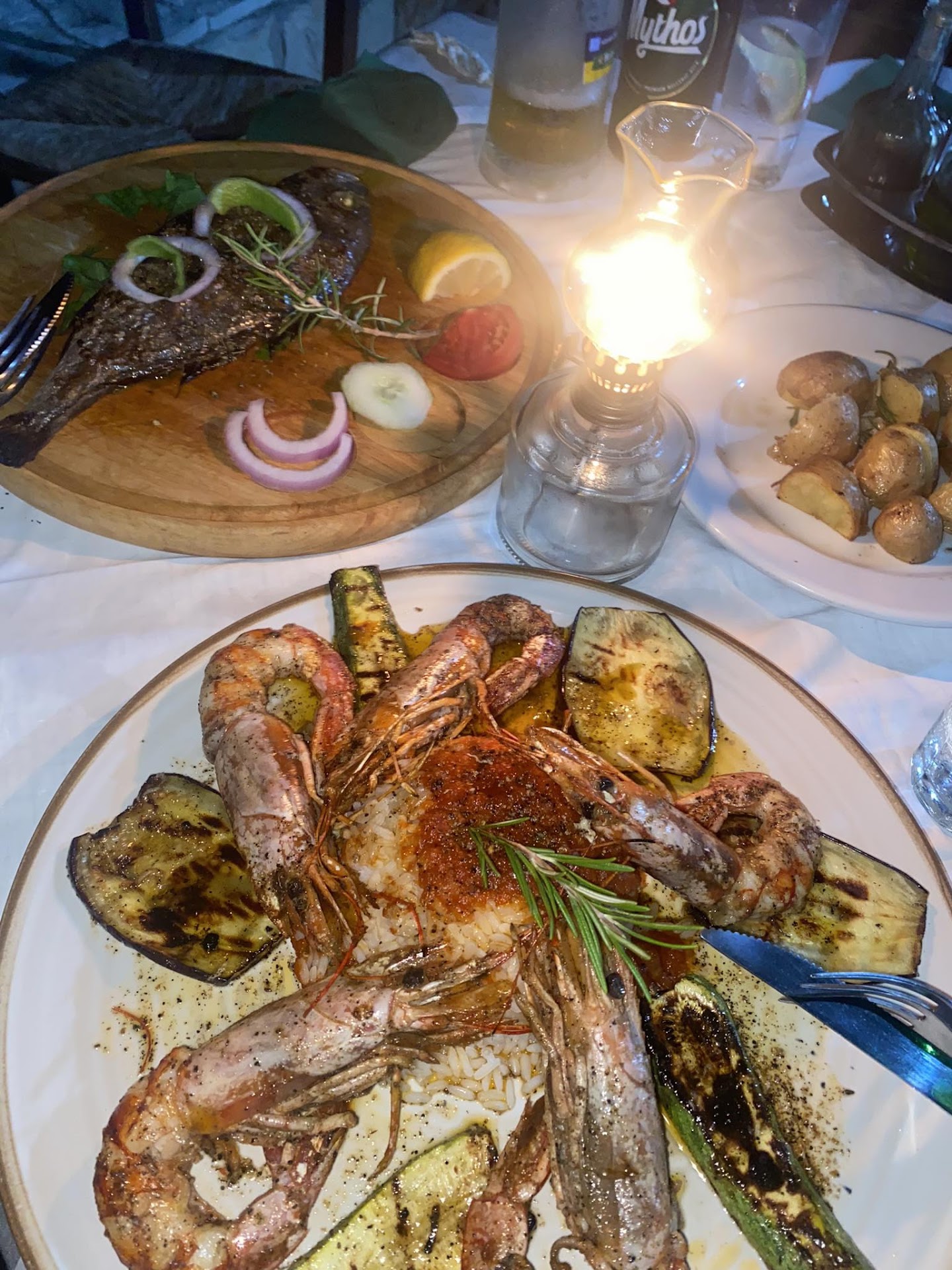 Read moreVery nice meal, lovely garden dining area and good service. We (couple) had prawn starter and Greek salad to share, then spaghetti bolognese and lamb chops. Lamb chops too big to finish and really good. Just beers and soft drinks during meal, and too full for desert. Complimentary bruschetta starter and free house ouzo at end of meal was very pleasant. Service very good, lots of explanation of menu items. I saw some comments about people thinking some of the prices weren't clearly marked (some prices are per person for a 2 person dish) but the menu was totally clear and we heard the waiter very carefully explaining this to other tables. Can you eat cheaper nearby? Yes, but the prices here are fair as the food is good and has options not...