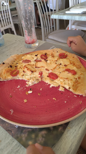 We went here for a late lunch after roaming the busy and noisy main street. Right at the entrance, we felt the air conditioning which was great on that particular hot summer day. The place seems quite popular, attracting mainly young crowds, as its location is right on the main street and very near the beach. We were not very pleased with some of the other patrons who were a bit too loud, but the food and drinks made our stay more tolerable. We started off with some fresh juice - strawberry and watermelon - and a local beer, which was properly served in a frozen glass. The juice was very good and refreshing - we recommend getting the large size, if you're feeling particularly in need of cooling down. For food, we ordered the moussaka which was hearty and very good. The cheese pizza with halloumi and feta was especially delicious. We also ordered the grilled mixed fish, which was very good and came with a side of grilled vegetables - a pleasant surprise and change from the usual french fries found at other places. The mixed fish platter was a rather large portion and the variation of the local fish itself was very nice. A special detail, if you will: the staff is very attentive to details, but not in a disturbing manner. It seemed that everyone had a job to do and they did not dilly-dally. They always seemed to be getting busy doing or cleaning something, and that says a lot about a foid establishment. All in all, it was a very good restaurant that we would gladly...