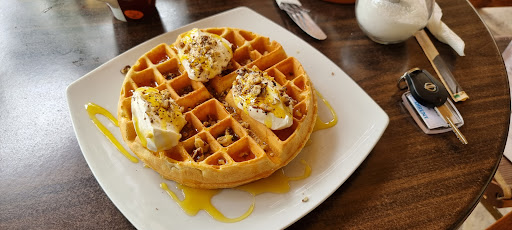 Of course, we also had Moussaka – and it was outstanding! Rich in flavor, perfectly seasoned, and full of that comforting homemade quality. For dessert, we enjoyed freshly made waffles topped with Nutella, chocolate, and vanilla ice cream – sweet, satisfying, and beautifully presented.