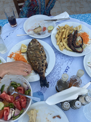 I usually don't review restaurants but I felt compelled to do one now. I ordered the Souvlaki maybe it wasn't the best idea in a fish themed restaurant. It took them ages to prepare the food and the restaurant was pretty much empty. When we finally got the food, the fries were raw and the we didn't get any tsatziki, no sallad either. So we had to send the food back, so more waiting. After about an hour we could finally eat. The food was alright and we were compensated with watermelon afterwards. So I guess they tried. But the reason I'm writing this review is because I'm currently lying in bed with a fever due to food poisoning. That was the first meal I had that day and the symptoms started a few hours afterwards so it was definitely their food that caused it. During the drive back to our hotel I got painful headaches, later on during the night I got chills, cramps, fever and finally diarrhea. Yeah so the last days of my vacation are ruined. I'm not gonna say don't eat there, just don't eat...