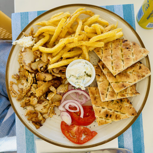 Read moreLovely setting, right by the beach. If you want to ensure you have a beach edge seat would recommend a reservation possibly. Staff are friendly and attentive, prices are reasonable, and a good selection of dishes to choose from to suit most people. The star of the show for us was the Traditional Baked Aubergine (its in the starters or veggie dishes), its so delicious that we had to come back to have this again, and since been researching how we can make this at home. The fish dishes are great, especially the sardines, and the gyros are a great lunch time snack if you're spending the day at the beach. Would recommend if you like great views...