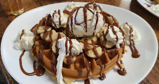Food - huge variety of fresh well made food. Gyros, omelets, burgers, waffles, soflaki, pizza, Wraps the list is endless. Massive drinks menu 😋 👌