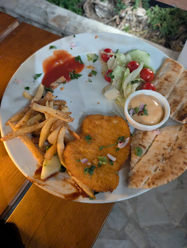 Read moreFake processed schnitzel, pre-made pizza base and one tiny piece of tough lamb in a 22 euro dish, limp cold chips and then to be argued with that I'm the first person to complain about the schnitzel and they're not a restaurant, they're a snack bar so it's ok to serve pre-made schnitzel. Not authentic Greek food at all. Just preying on the tourists. Also listening to the manager sitting at his desk yelling at employees. Don't argue with customers, rule #1 the Greeks seem to not understand. Yes I'm Greek so I can say this. Also waited over 30 min for pre-made frozen food. I JUST GOT YELLED AT BY T HE MANAGER in front of all the customers for complaining and telling him he is lying after he told me that the schnitzel was made fresh by the chef and then frozen, not factory pre-made . Then his other staff members all surrounded us as he was yelling at us and threatening us. DON'T go to this place unless you want to potentially get hurt. He got upset because I pointed at him while complaining. Poor guy, my finger was going to hurt him. Nasty...