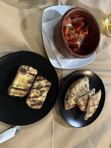 Amazing affordable chicken gyro pita and souvlaki!!! The tzatziki is something else! They have good dips for different dishes. The gyro plate (pork) came with some garlic mayo that was insanely good. My husband and I came back twice already for dinner, as they don’t open until 4pm. Wish I could have this for lunch. Best chicken gyro pita I’ve ever had, so tender, the fries inside and the garlic mayo were so perfect. Don’t undermine the size of the gyro pita because it was more than enough for me for dinner. Price was 3.50 euros I believe!! Servers are all very nice and attentive. Stuffed vine leaf (dolma/dolmades) was also so sour just how I like it!! MUST HAVE while in Amoudi, middle way eastern side...