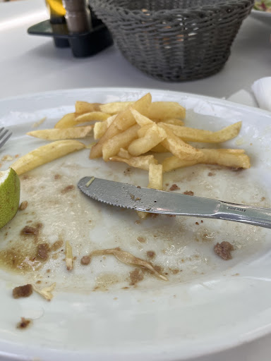 Evening ruined by extremely bad service. The older gentleman that greeted us was lovely but the other waiter, middle aged male with dark hair green T-shirt and shorts was extremely rude. He talked down to us at the table and was very forceful and intimidating. We hadn’t all finished eating and he was clearing the plates of those who had which we found very intrusive. When the bill arrived we saw that a meal of sardines that came with salad had been charged an extra 7 euro for the salad even though it was supposed to be part of the meal. The food was nice but everything was ruined by the awful service given...