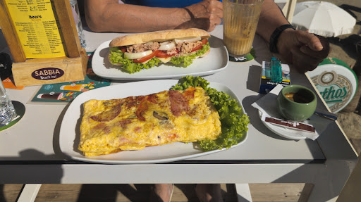 Read moreGreat place, the food is cheap and good, first row on a beautiful sand beach. You can park your car 15m to the left, right before the beach starts (in the sand where the boat rental is). Sunbeds are FREE (for customers). For the best experience: get a sunbed a few meters further down the beach (at the Harbourhouse, free too - just get a single drink when you arrive and your are good for the whole day - plain water is EUR 0.80) and eat at SABBIA (the food over at Harbourhouse is really bad in...