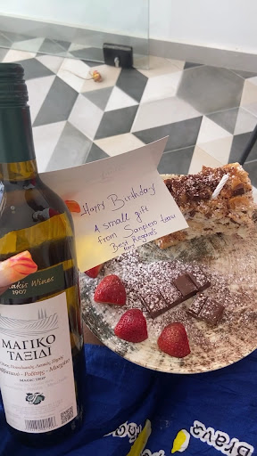 Read moreI'll start by saying that we don't usually eat at the same place twice, but we ate here about 10 days out of 14 for dinner and daily for breakfast & lunch. I can say for sure we ate around 80% of the menu if not more. We haven't tried anything and not like it, absolutely everything was excellent, and we were surprised by how quick the food was ready. Plating, taste, everything was amazing. Large variety of drinks as well, and the little wine room is a very nice touch. The restaurant is right on the beach so the views are breathtaking. About the staff...not sure I have enough words for them. They truly are the greatest asset this restaurant has. Athina, George, Leo and Yiannis are absolutely amazing, we felt like they are close friends of ours since a long time ago. They are part of what made our days here so good. The kitchen staff was so nice! We needed help with our baby's food and they helped us no questions asked. One big plus are the sunbeds. Very comfortable and greately positioned. Only...