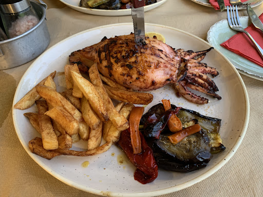 With just one other table occupied, it took them almost 70 minutes to bring us overcooked meat, underseasoned-everything, salads with some ranch dressing from the bottle, a chicken soup with a close-to-glue consistency and with lumps of flour, and the worst and smallest grilled octopus I have ever seen and tasted. Unedible food! ALL OF IT!