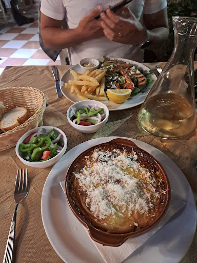 Read moreWalked from Alykes to Alykanas for drinks and dinner. Vryaki was one of the top reviews restaurants and came recommended. It was busy but welcoming. They offered us options for tables and we sat by the edge of the patio area. Good choice of greek specialities including some veggie. We shared a starter of stuffed vine leaves which came hot and were great. I ordered the vegetarian mousaka. It had potato instead of meat and parmesan sprinkled on top. It came bubbling straight from the oven in a lay individual dish. It was excellent, great flavour and a good-sized portion. My husband had swordfish which he said was perfectly cooked, served with chips. B oth came with a small side salad, which was a nice touch. We had the house karafe of white wine which was good value. The owners also brought a complimentary pudding local to Zakynthos. Overall a great meal, very good value...