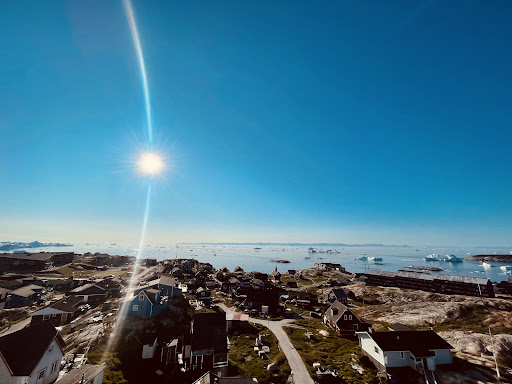 View is spectacular. It’s a bird eye view of Ilulissat when you go out to open air rooftop area.