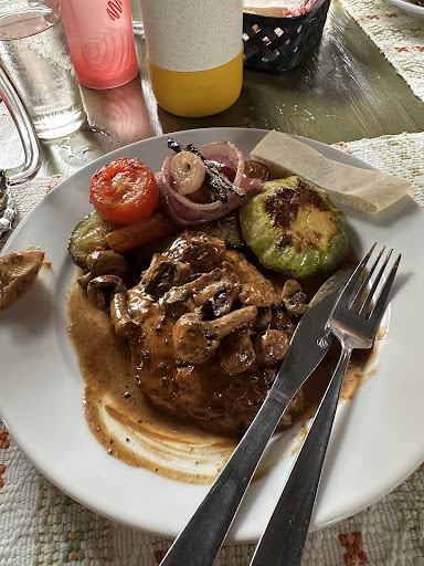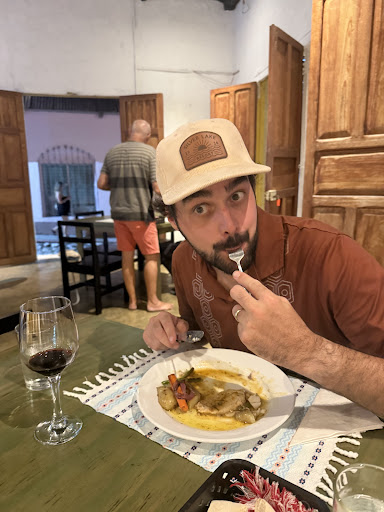 This was one of the best dining experiences I’ve ever had (and I’ve been to many nice places) and the highlight of my trip to Guatemala. It was such a surprise as the restaurant is so lowkey and I just walked in to it with no preconceived idea of what was about to happen. Bernie is an extremely charismatic, professional, and passionate chef who takes his craft very seriously. For every table, to begin, he sits down and has a chat with you. There are no menus here. You get to know eachother, talk about each other’s life experiences and inspirations, and explore the raw ingredients he has available at that particular time to work together and create a dish you’d like. He tells you the different meats and fish, vegetables, salads, sauces, and carbohydrates he has available, and you get to build what you want with his input in real time. For example, my friend is from an island in Saudi Arabia who export a lot of fish, so he was craving some nostalgia and wanted a dish based around fish. He picked a white fish, with sautéed vegetables and a tangy sauce. The dish was excellent and it was cool how Bernie told us the story of how he found that particular white fish he used when on a trip to Brazil. Every ingredient is organically sourced, with a personalized history of how Bernie found it through his life experiences. I could talk to this man all day. I’ve never seen the concept of such an intimate experience with a chef, where you become friends and build a dish off your history and life experiences. It’s amazing. I would recommend anyone to have this experience and I will be coming back to Flores, Guatemala just to see Bernie again! Thank you Bernie! Keep doing what you’re doing...