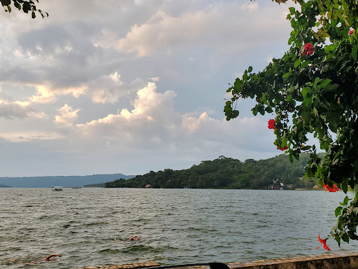 This was the best service I've experienced since being in Guatemala. The waiter was attentive, gave good recommendations and allowed me to have the two happy hour cocktails at intervals rather than together, given that I was dining alone. He repeatedly checked if I needed anything else and was quick to clear the table and bring the bill when I was ready. The service charge was included on the bill (which seems to be standard in Guatemala) - it's not something I like, but at least in this case the service did warrant a tip. The prawn cerviche is not something I would have thought to order but it was recommended. It was delicious and the accompanying nacho chips were warm and fresh. The sunset view was beautiful and the tables are right on the water's edge, with plants and birds around too. I was there from around 4pm-6.30pm and it wasn't very busy, just a few other tables occupied, so I found a spot with a great view. The only thing I would change is the high seating on the outside tables. I would have found a normal height...