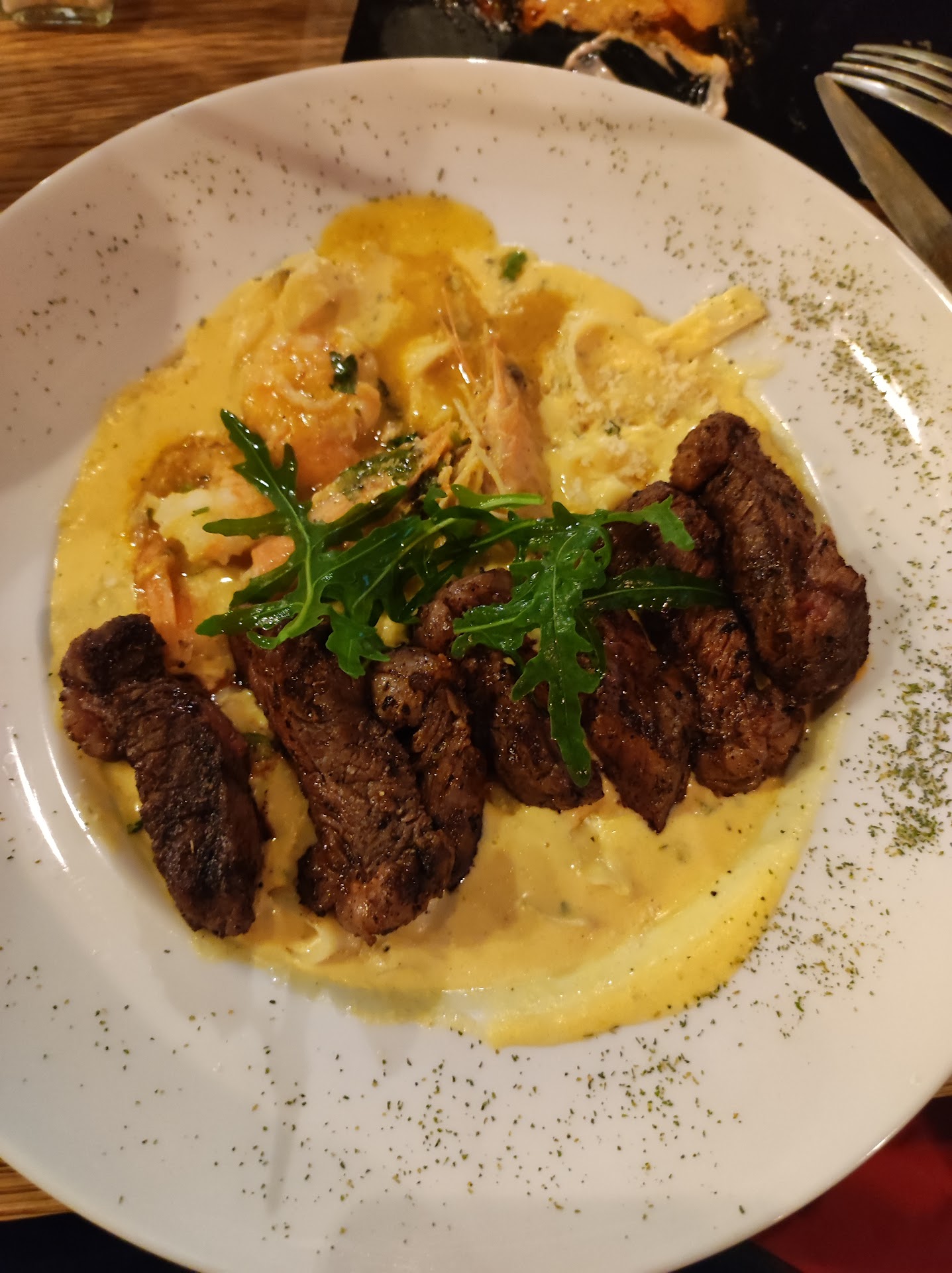 Read moreSiempre frecuento fontabela y los restaurantes del lugar pero nunca había entrado aquí . Entre esta noche a las 21.00 PM. Miro el menú donde las fotos prometen una buena presentación , se dejan vender solitas . Pedir un antipasto bien grande con diferentes cosas que probar y pedi también unos tallarines mar y tierra . Recibí mi bebida a las 21.20 , el plato de antipasto a las 21.40 y a las 21.48, tampoco había terminado mi antipasto , me traen la pasta y la mesera me pregunta si podía retirar mi plato de antipasto que no había terminado . A las 21.52 , terminando mi antipasto y empezando a comer la pasta (muy poca pasta adentro ) , llega la mesera preguntando si quería pedir algo más porque la cocina cerraba a las 22.00 . Le dije que no sabía aún , ya que no había empezado el plato fuerte y no sabía cómo iba a quedar después , quizás queriendo algún postre , aunque no me pareció muy buen servicio presentar el plato fuerte juntos con el antipasto, obligando al cliente comer seguido sin pausas para no dejar enfriar la comida y apresurando los clientes así . Creo que falta un gerente o alguien que cuide el servicio y los clientes que son los que llegan a disfrutar una cena y que no piensen solamente en cuidar la hora de salida del personal descuidando la atención, eso no se puede hacer en...
