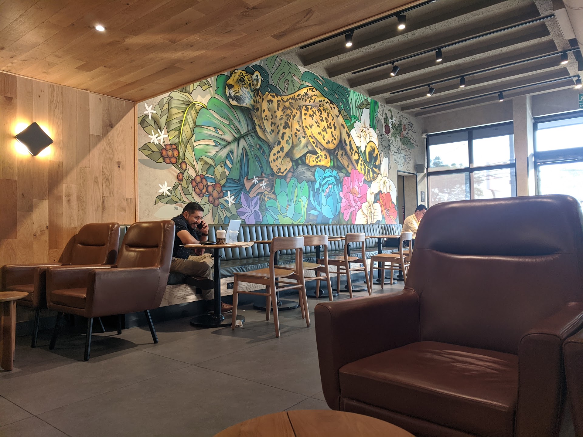 Read moreNo es muy adecuado para juntarse a platicar con amigos porque el volumen es muy alto, también los precios de la comida y café preparado muy elevados. Lo que vale la pena son los granos de café de temporada que tienen, tienen variedad de acidez y tostado. Lo único que ya no tienen es café de tostado claro, lo descontinuaron. Aunque vale la pena estar pendiente de los granos de temporada porque traen algunos granos del...
