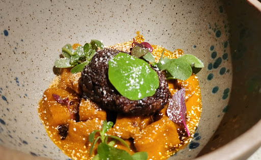 "Zapotitlán" fue un espectáculo en sí mismo. Las paletas de atún con hidrógeno eran una experiencia única y deliciosa. El sabor del atún y la pepitoria se combinaron de manera sorprendente, y el espectáculo que acompañaba al plato lo hizo aún más impresionante.
