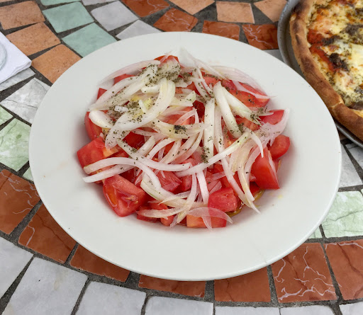 Read moreBeen coming here since I was a kid. Their tomato salad is so simple but so good, you can tell they use quality ingredients. Recently I decided to order half anchovy pizza instead of the one I usually get (cheese, tomato sauce and basil). So impressed with it I'll order a full anchovy next time. Nice to sit outside at one of the tables by the garden. I'm curious about the little bar but never been there, maybe I'll check it...