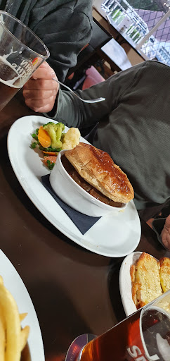 Lovely food, (lots of it) car park right outside and nice & normal (not pretentious or flash). There are steps up to the front, I'm not sure about wheelchair access (but I tripped on the steps once, before I used a walking stick, I'm only 41, but my partner has never let me forget it!) There is a kid play area (if you must) although the staff were lovely and moved us when we asked because the child-noise was unpleasant to us! Buses stop I believe pretty much outside and it is on a main route, so I don't know how late they run but probably better than a...