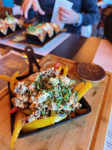 What to say about Buho atmosphere was lacking but it was midweek so not the most fair comparison Our meal was served quickly I enjoyed my chimichanga defiantly seemed I had the nicer meal but the quesadilla was a close second, the grilled chicken was burnt and way over charred on the outside when asked if this normal and if we could change it they did say did try to argue that the chicken cant be served pink which just sounded there shifting the blame for there inability to cook chicken thighs on the first attempt while belittling us I found annoying yet also amusingly childish but once it was corrected it was fine. The street food dishes are great main course option especially for the price but if you are hungry you will need sides as that is literally all you get and a pinch of slaw garnish. The restaurant is definitely for a younger crowd plus when you add the escape room in it can make a fun evening for groups or...