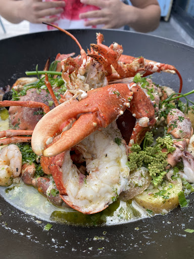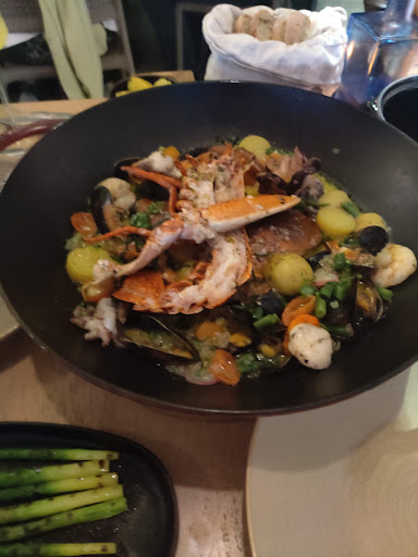 The food was good to great. We had a couple of oysters each as starters which were presented nicely. We also shared a 'hot seafood pot speciality' of half a lobster and crab, along with some sides of 'rosemary potatoes' and asparagus. The decor of the restaurant is great. The location is good.