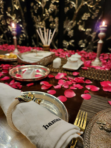 Ā Ā Ā Read moreI have always wanted to go here, and experience the private dining so I decided to surprise my husband for Valentine's. Got a table on a Sunday, it's very hard as you have only 2 slots a day, so make sure to book earlier. We could choose the menu a day prior to our visit. So we reached the place on time, and went and told about our reservation. We were escorted to the 2nd floor, the place for private dining, the moment we got out of the lift, we see two doors in silver and the manager opens it for us and we get inside the room. The room beautifully lit and smelling of fresh roses, adorned with silver artefacts and wall murals, the table with silver cutleries on a bed of roses. Absolutely awestruck by the royalty and hospitality. We sat there first just observing all the cutleries and the ambience around us. We were welcomed with a sweet, gulab jamun served in this beautiful dish. Then we started off with a chef's special soup foe the day, tomato dhaniya shorba. For the starters I chose the cheese kurkure, grilled vazhaithandu and makkai muthia chaat. Loved all of them, the cheese kurkure paired really well with a green chutney they served. For the mains, I picked a bhindi bhaaji, urlai roast, koften brindavan, palak paneer, subz dum biriyani and a mix veg raita along with cheese and olive naan and garlic naan. The mains served in little katoris were really rich in taste and looks. Very appetising. But honestly, though the items looked very less, we couldn't complete everything and had to waste a lot of it. The quantity was a lot. For the beverage we had a sambhaaram and a masala buttermilk. And to end the feast, I chose a lychee aur thande naariyal ka kheer, badam halwa and saffron kulfi. Lip smacking desserts, absolutely delicious. The flavours of each of them right on point in each of them. Everything so rich and tasty. We really had to waste a lot of food which felt very guilty, but it was worth the experience on the whole. We even had a bell to ask for more if needed. One drawback, which we felt was there was no handwash in that floor specifically for the private dining area. We had to go to the first floor to use the restroom or wash hands. I would probably like to have a hot wet towel as the guests arrive and are seated before they start with the soup, to compensate for the washing of hands. I feel that would be a nice alternative to making them go down and wash their hands, with all the royal treatment already being given, this is just another small addition. All said and done, one amazing experience on the whole and truly felt like a...