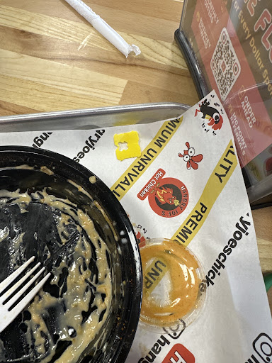 my boyfriend and i came to eat here as it’s our go to place to eat, and not only were we missing food, (which isn’t that big of an issue), but we watched an employee, i believe his name is kaiden, sneeze into his hands and continue to not wash his hands, but go on his phone and help a customer, WITHOUT WASHING HIS HANDS, which all of which are way against food safety regulations. it makes me question their servesafe certification posted by their mobile order pickup cart. also, there was a bread tag on my tray with my mac and cheese and fries.. this experience ruined our views on this restaurant.(also added a picture of an example of their unkempt lobby)