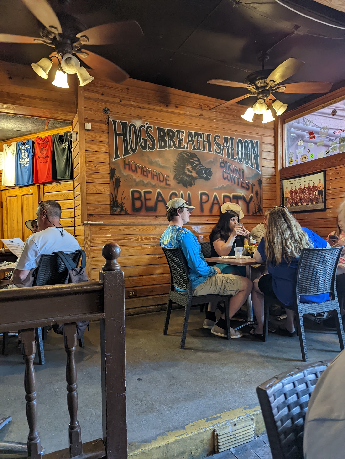 I've lost track of how many times I've visited Key West and Hogs Breath has always been a favorite place to stop in for a quick beer and maybe two or three if there's good music going on. About a week ago my family and I (5 of us) stopped in after having walked around town all day. We showed up in need of everything - food, drink, and a place to rest. We figured we'd spend the next hour or two rehydrating, drinking beer and cocktails, and ordering whatever it took to fill everyone up. What we received was service and an attitude of a waitress that was nearly unfathomable in a tourist town or much less any bar/restaurant on the planet. We were given a table just inside the restaurant area, a few steps out from the bar, where we sat and looked at drink menus and I patiently waited while our party, famously indecisive and needing forever to figure out what combination of drinks and apps to order, figured out our game plan. So much time went by that I was 100% there was no waitress assigned to our table and that we must obviously have to go up to the bar to get our drinks started. I went up to the friendly bartender who started off by making a couple drinks and pouring a couple beers and as he was swiping my card my wife came to tell me the waitress had come by and asked if it was too late to cancel our bar transaction. The bartender and quickly done his work and no big deal I thought for us to settle up and continue on with whoever our server would be. Oh how wrong I was. When I brought the drinks back to our table my entire family said how pissed this girl was, how she complained that we had gone to the bar and had stormed off in response after my family had started to ask for waters. I went back to the bartender to ask for waters and he said if we had a table that he shouldn't serve us waters or anything else. I told him based on my family's reaction the waitress had no intention on bringing us water. He said she had to and, having trusted this nice guy from our previous interaction went back to the table. After sitting down for a few minutes and noticing there was a server frequenting the other tables around us, it was just as apparent she was ignoring service to ours. She even would occasionally scowl at our group. I ended up going to the outside bar to grab a couple waters and brought them back. We had finished our round of drinks and finished our waters when the waitress, a prolonged period of time later, brought waters to my family. The entire experience at this point was appalling and we decided we were done with Hogs Breath for this day with the unprofessional, immature attitude from the waitress having done in the entire experience. We thought we would try to make it up to her and as an apology (because she had entirely made us feel we had committed a tremendous crime that entirely ruined her day) tried to give her a straight $20 for having done nothing but bring us waters and treated us like absolute sh!t and the girl wouldn't even accept it. She was so pissed that she wouldn't even take a twenty from us after all she had put us through. What an absolute total fail as an employee and human being in general. Total fail for Hogs Breath on this beautiful January day. This one waitress needs to go. Despite having lukewarm fond memories of Hogs Breath from the previous 20 years I'll never forget this one experience that greatly sours any good times...