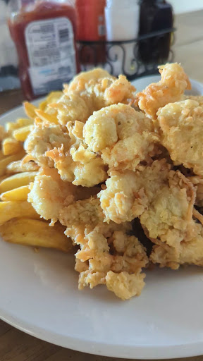 The menu at Splash Inn is varied enough that we could all find something that we liked. Prices are pretty good for the area. Fish and Chips, a burger or a pizza...around fourteen bucks for whichever. We tried the fajitas and were pleased. It seems like their fryer can only hold about two portions of fish and fries. When the three of us ordered the fish and chips or even all three of us getting fries...the total portion seemed to be the same for two as for three...see pics.