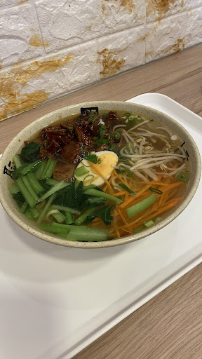 Zöldséges ramen: barátnőm kapacitásának köszönhetően meg tudtam kóstolni, és meglepett hogy mennyire eltért az enyémtől. Minden íz vibrált, egyszerre hozta a természetesen neutrális ízeket, és mellette mégis "kikente a pocakot" belül.