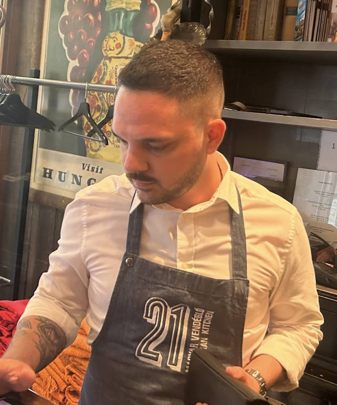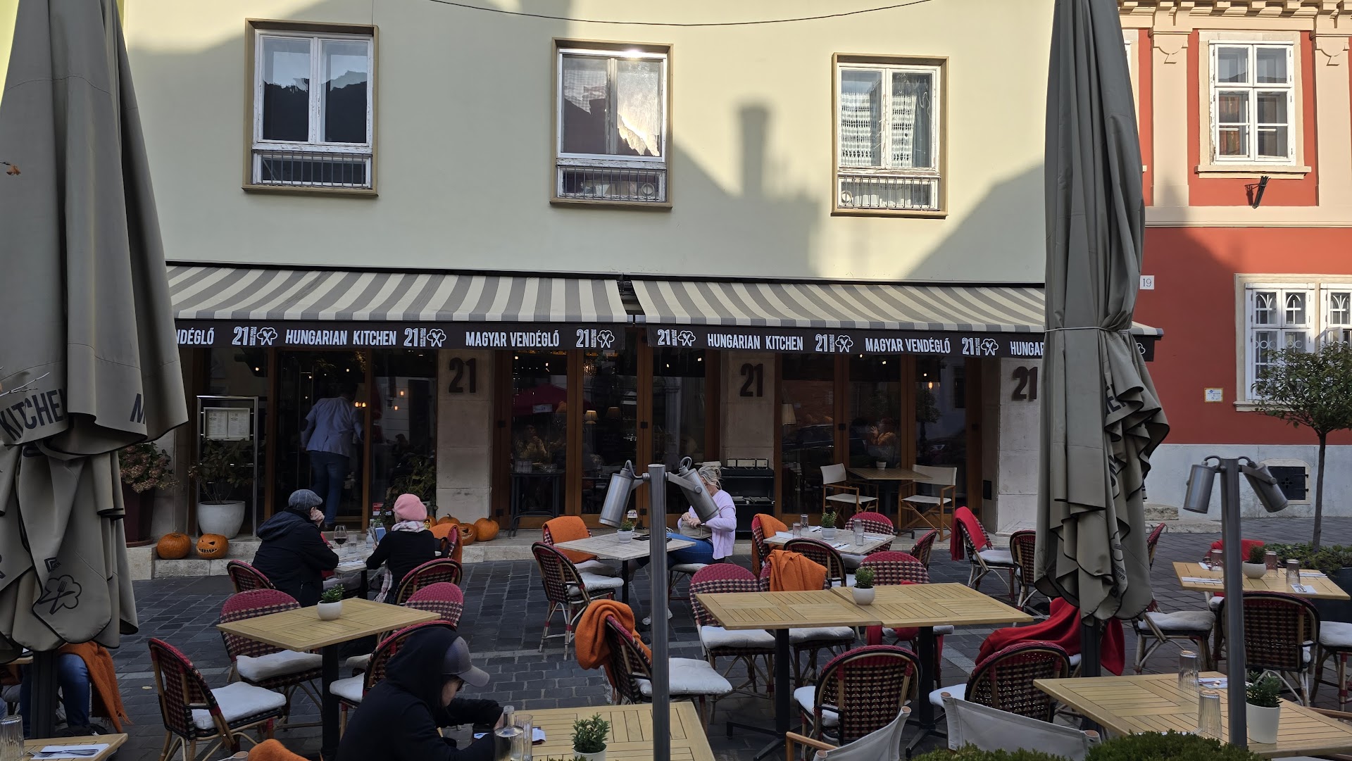Read moreThis had to be one of our favorite restaurants during our visit to Budapest. What made it so special besides its obvious charm and wonderful cuisine, was the staff. So before reviewing further, let us recognize to superb staff members we had the pleasure of being taken care of during our lunch. They are Akos and Bence, who went above and beyond to make us feel like we were close friends, what a delight it was meeting them that find Halloween day. So, if you are visiting the Castle Hill District, you need to make it a point to stop at this amazing restaurant for lunch or dinner. There are numerous dining tables both inside and outside of the restaurant and the atmosphere inside is warm, charming and inviting to those who visit. The restaurant has a variety of daily specials, and the prices are quite reasonable, especially considering the generous food portions. We had goulash and the soup of the day, which I believe was spicy pumpkin soup and the fresh homemade bread was wonderful. Overall, this was a wonderful luncheon experience, in essence, a sensory feast. So, from the couple from Las Vegas, Nevada, USA, thank you again for the experience and the kudos once again to...