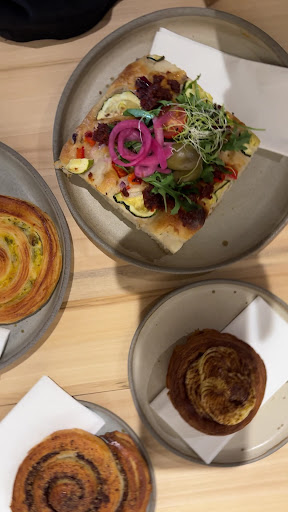 Egg frittata is good flavr balance, comes with yummm bread slice..but the pesto danish is better if u gonna eat just 1 savoury. Skip the coffee.. was ok for us. The focaccia n other sandwiches looked great too but we didn't have more time. 1 roll is about 1100-1200ft/ 2.5-3 €/ 440 INR Will be dreaming about the pistachio raspberry roll for a...