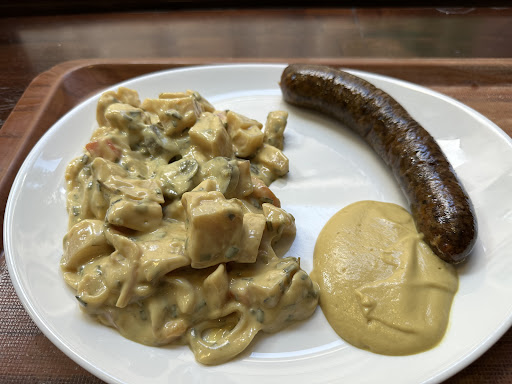 Read moreWe came here as we saw that one gets a beer for only 650 forints. We thought that these prices also translate to the food. We ordered 2 canned beers, goulash with fried potatoes, one other side dish, a bowl with two different salads and goulash soup. We were asked to pay 9900 forints. Ups. Keep in mind that this is a self-service place with canned beer. The next evening we went to a beautiful indian restaurant and paid slightly more for great indian food with a proper restaurant ambiente. Most people we saw just ate a sausage with some side dish. A sausage costs 1500 forints per piece and a side dish 800 forints. The goulash was recommended by the lady. The meat was lean but it was super (way too) salty. I would not eat this goulash again. When you order, you will not know, what you will pay after, since e.g. the salads are weighted and then you are charged accordingly. The salads were drowning in mayonnaise. So if you take salads you pay for mayonnaise. If you want to get a good value for your bucks, go further and enjoy a nice falafel pita for 1800 to 2000 forints or a langos with stuff on top of it for around 2000 forints. If you want good Hungarian food, leave the center and look outside the tourist hotspots. Keep in mind that this place is in a tourist hotspot and that it is essentially fast food. THIS IS NOT A CHEAP PLACE as written by other people. Since there are no prices written at the dishes but only on a small flyer, you tend to take more than you need and you will be surprised what you pay after. Enjoy your stay in Budapest. And be aware of the "service charge", which many restaurants in Budapest tourist hotspots add to the usual prices on the menu. Always ask BEFORE your restaurant visit, if they charge a service charge. If they do, decide, if you...