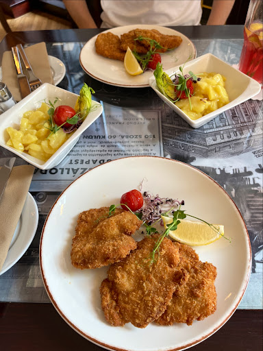 Read moreAn old cafe restaurant with an interesting atmosphere with relatively tasty food. The desserts are ok,but that's all. The service was bad, we were served by a very angry waiter(maybe because we weren't hungarians and we didn't speak their language)We decided to order a rose,which was half the price of the more expensive one,but when we got the bill they charged us the price of the more expensive one. The salads came with the main dishes,also there is a lack of variety in food choices .The food wasn't cooked properly , also it was very salty. The schnitzel was the only decent thing we tried. For this price, quality of food and service - we will not be coming here again!!!!! This was the worst restaurant we have ever been to in Budapest. My daughter had stomach problems after we left. Don't make the same mistake we did, by...