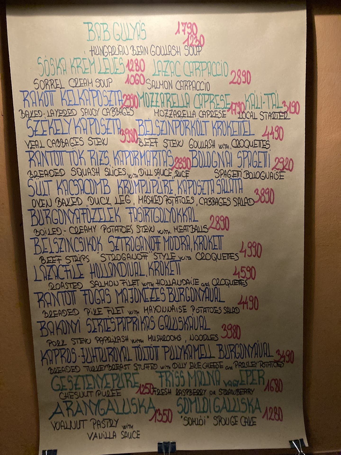 Read moreThis restaurant was a recommendation from one of the locals, stating they served excellent traditional Hungarian dishes. We were so glad we took their advice and had dinner here. The restaurant is located Sas U, which just north of the St. Stephen’s Basilica. The restaurant is a rather small, yet cozy place with only a limited number of dining tables, with a warm and welcoming atmosphere. We did see a few tables outside and what appears to be one small table upstairs that night, but they were not being used. The staff of the restaurant were polite, professional, but not overly warm and friendly. We were quickly waited on and it did not take a great deal of time before our dinners were served. The food was wonderful, served hot and everything we had was delicious, in all, a wonderful dining experience. They do add a service tip to your bill automatically just so people know not to tip twice. Finally, when you do enter the restaurant if you look to the right, you will find a scroll on the wall with the specials of the day in English...