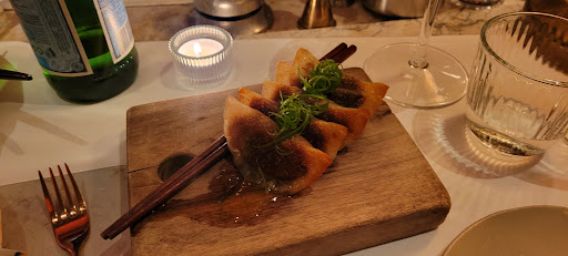 Read moreFor the expectation they boast of excellence, this place is vastly mediocre. It's difficult to be so critical, however, the quality does not match the price. Upon arriving, we were recommended "wonderful and cozy seats," which happened to be at the bar, closest to the door on the coldest day of the year so far; an extremely high traffic area. We thought maybe because we didn't have reservations, however, when we finished our meal, the restaurant was at most 75% full and more suitable seating was available the entire time. We spent a lot here, perhaps too much, mostly because we expected great things. After ordering our meal, the staff recommended bringing us all of our dishes at the same time, with no order, telling us that everything is served in plates to share family style. By the time we tried a bite of each, everything had gotten cold. We started with the oysters from France, which were perfectly fresh. However, they were shucked carelessly, so we had bits of shell throughout each bite. We opted to try their dry aged wagyu ribeye. We've had both dry aged steaks and wagyu before, but this one missed the mark on both fronts. It was cooked with great skill but I was unsure if it was aged at all and the cut was inconsistent throughout the steak with a large line of chewy connective tissue that was stuck in my teeth all night afterwards. The duck gyoza had an interesting wrapper with great chew and sufficient filling, but the duck was dry and not delicate. The calamari was tender, and the sauce was good, but it was incredibly overhanded. When trying to get a balanced bite from the dish, you couldn't tell that there was any squid in both texture and flavor. Maybe personal preference, but I believe that there was nothing done to highlight the calimari at all. There is more I could discuss outside of just food, but if you're willing to pursue their menu for great food and/or a unique experience, youre much better off going to a recognized Michelin starred restaurant considering the price. If you're willing to budget yourself, be prepared for non memorable dishes. Perhaps it's the location. Perhaps it is a tourist trap. No matter the case, we were unfortunately...