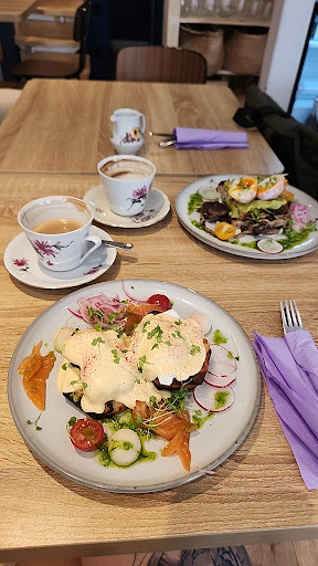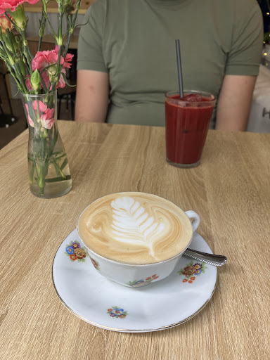 Greeted so very warmly this past Saturday morning by the owner David who has the banter of a British man mixed with Budapest charm. Very professional so welcoming really cares that you enjoy without being heavy going. Our waitress Nathalia is the epitome of the perfect blend professionalism with friendly. I’d literally love to be friends with her. She’s super knowledgeable about the foodie scene and just a really lovely person and really cares about hospitality. And it shows! We didn’t catch the baristas name who seemed super cool but boy oh boy can he make you a delicious pistachio lattes!!!!