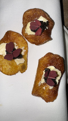 It seemed like the restaurant was winging it with a B-team in charge. Plating was basic, food was uninspired and for the price we paid, very underwhelming. Amuse bouche was caviar and cream on potato chip that happened to be overcooked. The dinner included a consommĂ© and a soup - as back-to-back courses. Good, but two soups? The âFoie Grasâ was a dense, cold terrine with one medium-sized bun shared between two people. The meat course was venison with mashed potato, both competently done, but so, so uninspired.