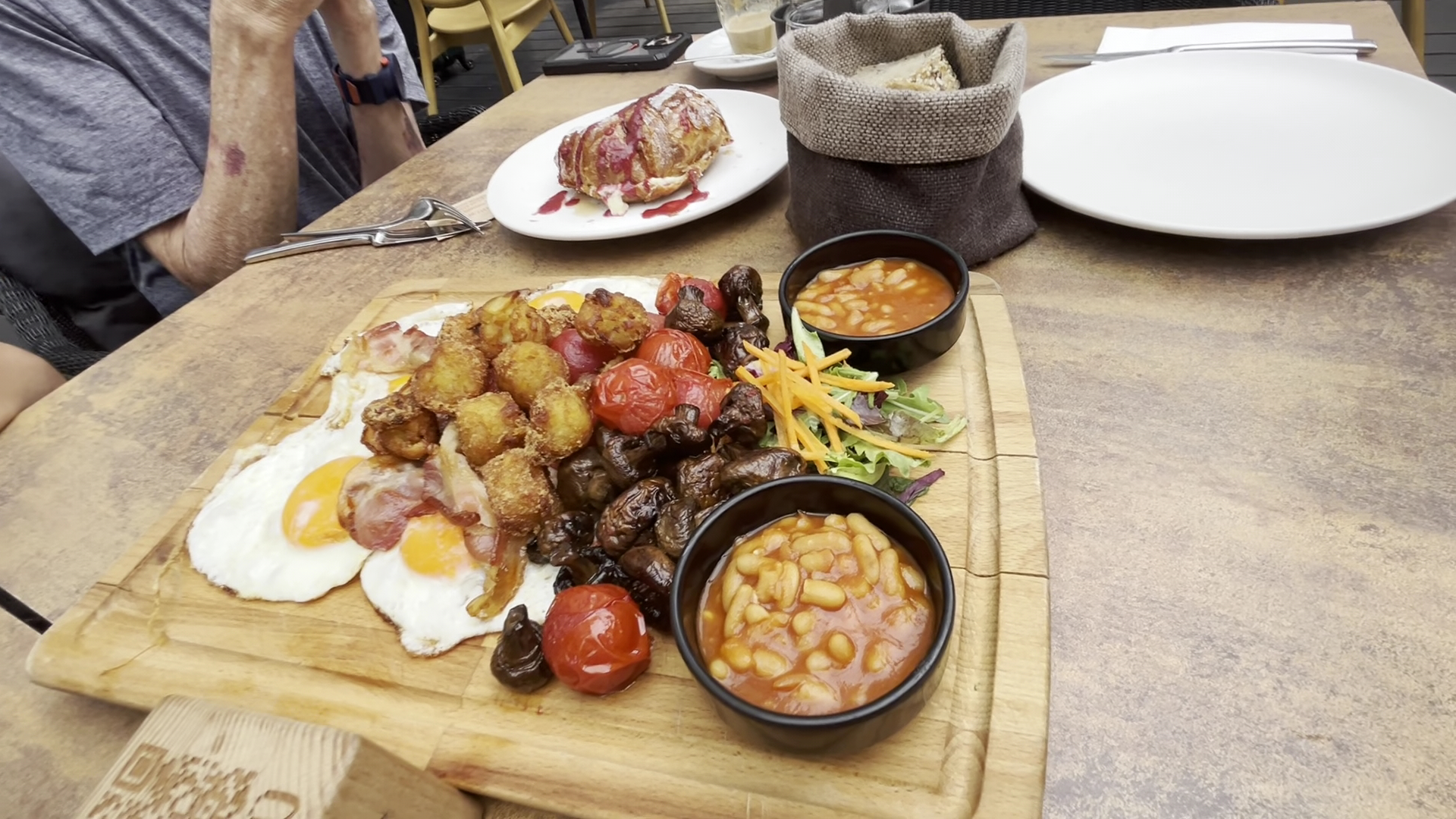 We went for a proper feast, sharing a variety of dishes. The salmon bagel was fantastic, with fresh ingredients and a wonderfully chewy bagel. The cheese omelette was fluffy and perfectly cooked, a simple but delicious choice. The star of the show, however, was the English breakfast for two. It was a monumental spread, filled with all the fixings, and easily generous enough for the three of us to share and still feel full. Every bite was top-notch, and it was the perfect way to start the day.