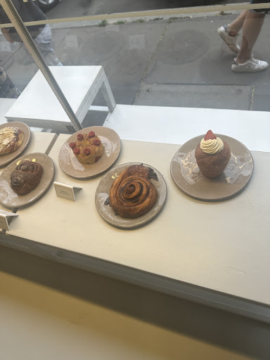 Read moreWalking up, you are greeted by windows filled with beautifully done flakey pastries, both sweet and savory. I wanted them all . Sadly, the raspberry were sold out by early afternoon, but with plenty of other options, we stayed the course. Unfortunately, this was only the first in a series of disappointments. Stepping through the door, you wouldn't be faulted for thinking you had taken a wrong turn and landed in the pastry oven itself. The shop drastically over compensated for the cold weather and had the heat cranked to 10. Soaked in sweat by the time I finished ordering 2 pastries and a coffee, I returned to my travel partner to find them on a window bench, the only open spot in the restaurant. The pain au choco and pomegranate sticky bun were both good, my partner a bigger fan than I of either. Perhaps the experience may have been elevated by a coffee to balance out the sweetness, but mine was nowhere to be found in the 15 mins it took to finish our treats. When I stopped the very busy waitress to inquire, she corrected the forgotten beverage, delivering an Americano bitter enough to mellow the sugariest...