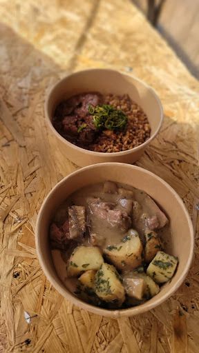 Onyx: main course 1: bbq beef rump steak, smoky paprika, beer, bread end on an edible plate main course 2: marrow knuckle tripe stew dessert-ish: bread ice cream, paprika raspberry sauce, beer cubes - this was probably the weirdest ice cream I've ever had, but in the most positive sense!