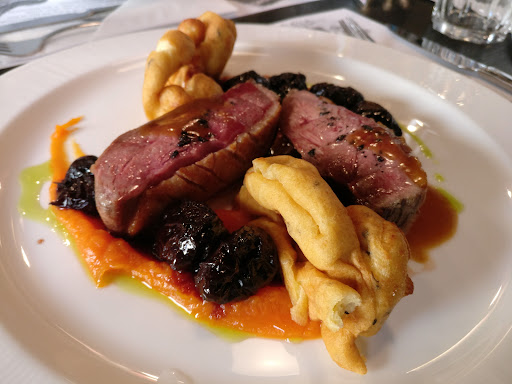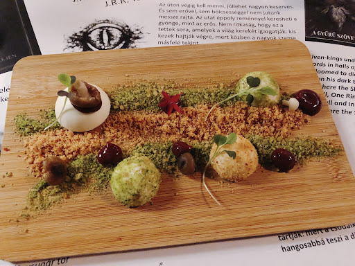 We had the Lord of the Rings menu: the Gorgonzola starter was creative and surprisingly light which was positive. The mackerel that followed was served with a huge amount of potatoes and was overall a bit plain. The rabbit tasted good but was dry and the vegetables that came along didn’t match. The palette cleanser ice cream was way too heavy and creamy - it felt like a dessert. The main course (tenderloin) was overcooked (almost well done) and even had a bit of a burnt crust. The crisps that came along with the beef were soggy and chewy in the sauce and mash (again potato). The chocolate dessert was very heavy in orange sour and sweet sauce and the sweet wine wasn’t a good pairing either as it’s an overkill.