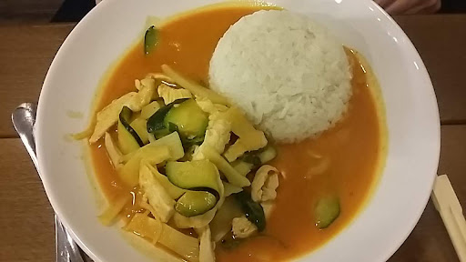 Read moreWe're visiting for the first time from the UK. This restaurant is self serve style where you order and pay first at the cash desk. Then when the food is ready you collect from the front where you add condiments and cutlery before sitting down to eat or they do a takeaway service. This was the first time we came across a restaurant with such laid back style, but we liked it's quirkiness! The friendly front of house lady spoke very good English and the cooks in the kitchen we're all ladies too! The food was very good we had tempura prawns to start and my husband had the red curry and it was labelled as medium hot which was just right for him he's been to Thailand and he said it was very authentic. My egg noodles with chicken and a variety of veg was very tasty too. We ordered a tapioca pudding each not realising how generous the portion size was and had to ask to take away to eat later. So glad we did it was heavenly and we finished it all back at our hotel! We will try to go back before we...